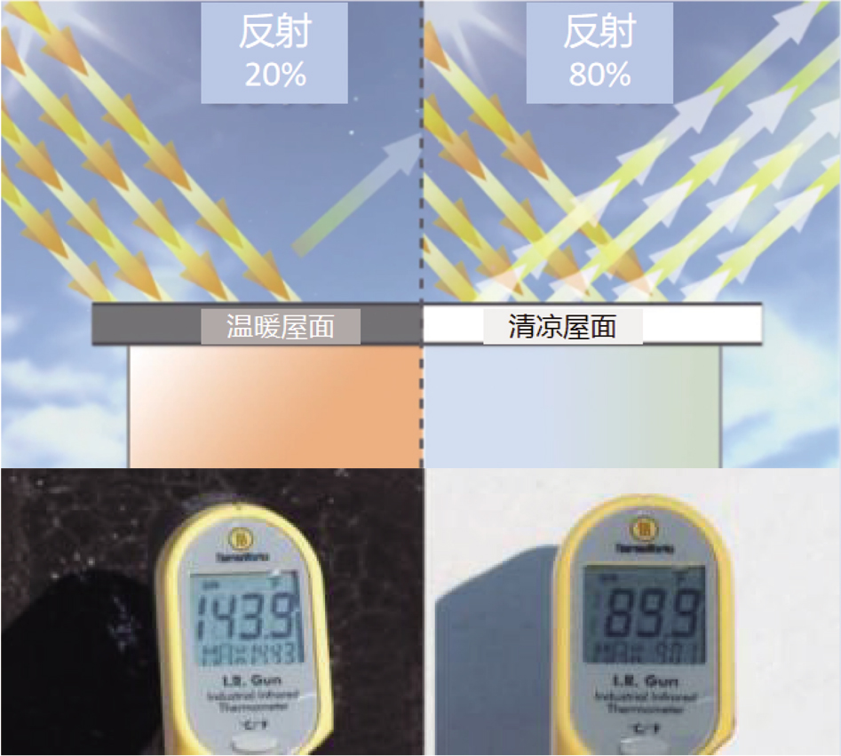 - 清涼屋面用來最大化減少熱吸收,增強屋面耐用性