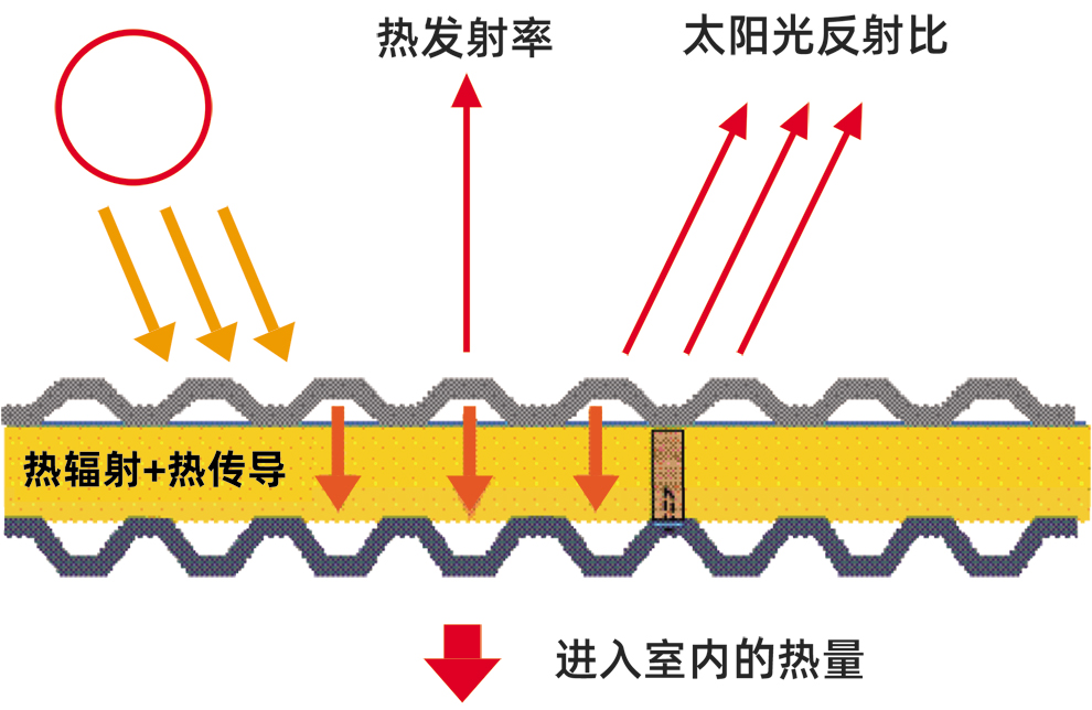 - 材料表面的易清潔性能,使得屋面不容易被灰塵等污染,保持長效的反射率。